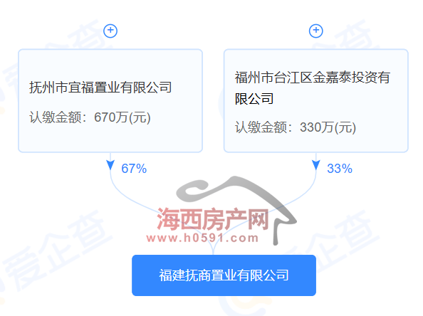 股权穿透图显示,抚州市宜福置业有限公司、福州市台江区金嘉泰投资有限公司分别持有福建抚商置业有限公司67%和33%的股权。