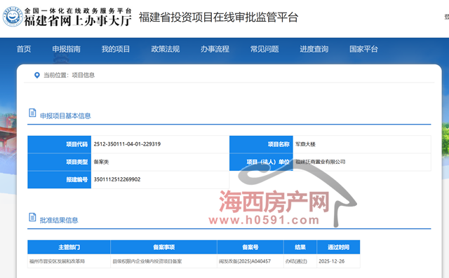 海西房产网(微信公众号:fjhxfcw)消息:福建省投资项目在线审批监管平台公布信息显示,位于福州五四北的“军鼎大楼”项目已于12月26日通过备案报建。