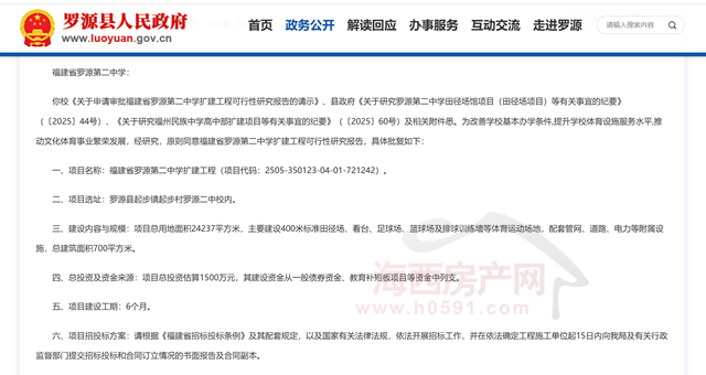 根据2025年6月1日,罗源县发展和改革局发布的“关于福建省罗源第二中学扩建工程可行性研究报告的批复”。