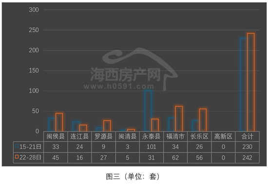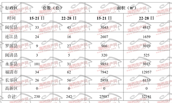 “永泰”、“罗源”位列四、五两位,上周分别签约31套和27套,环比前一周分别减少70套和增加18套。