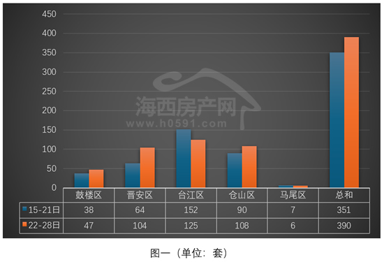 “鼓楼区”位列第四,上周签约47套,环比前一周增加9套。“马尾区”上周仅签约6套,环比前一周减少1套。