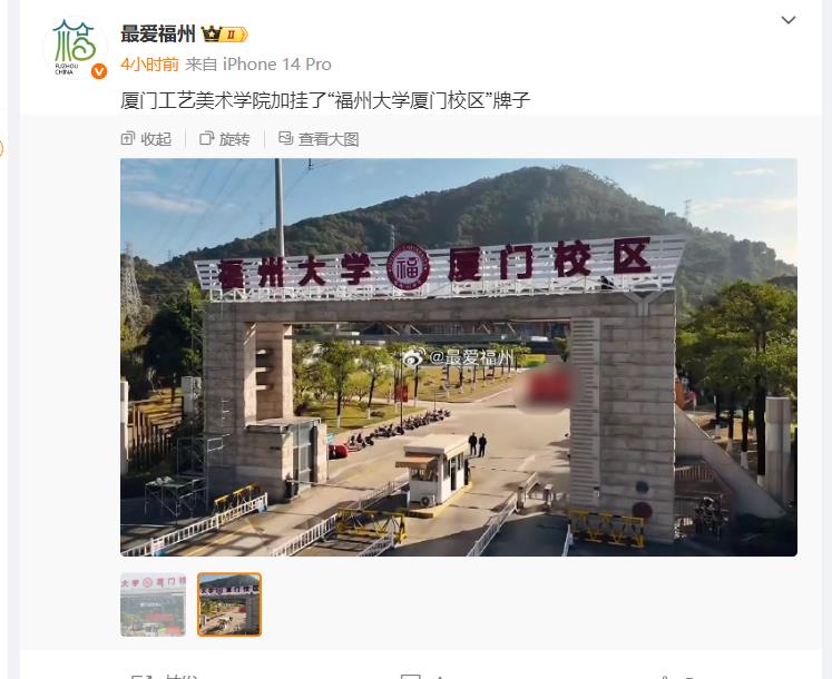 2025年12月29日,福州知名微博大V@最爱福州发布消息称,厦门工艺美术学院加挂了“福州大学厦门校区”牌子 ,并晒出多张实景照片。这也意味着福州大学集美校区“提质扩容”已取得实质性进展。