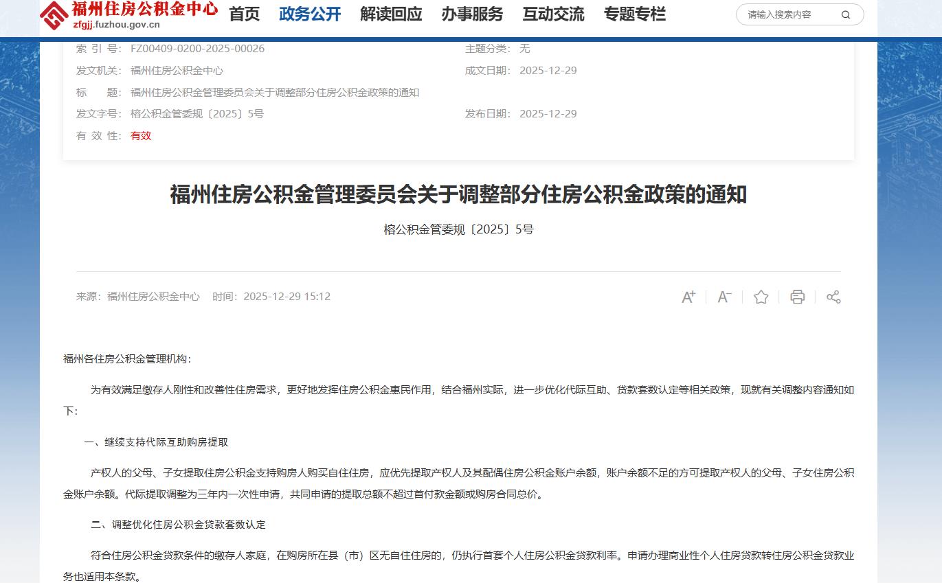 海西房产网(微信公众号:fjhxfcw)消息:2025年12月28日,福州住房公积金管理委员会发布“关于调整部分住房公积金政策的通知”。