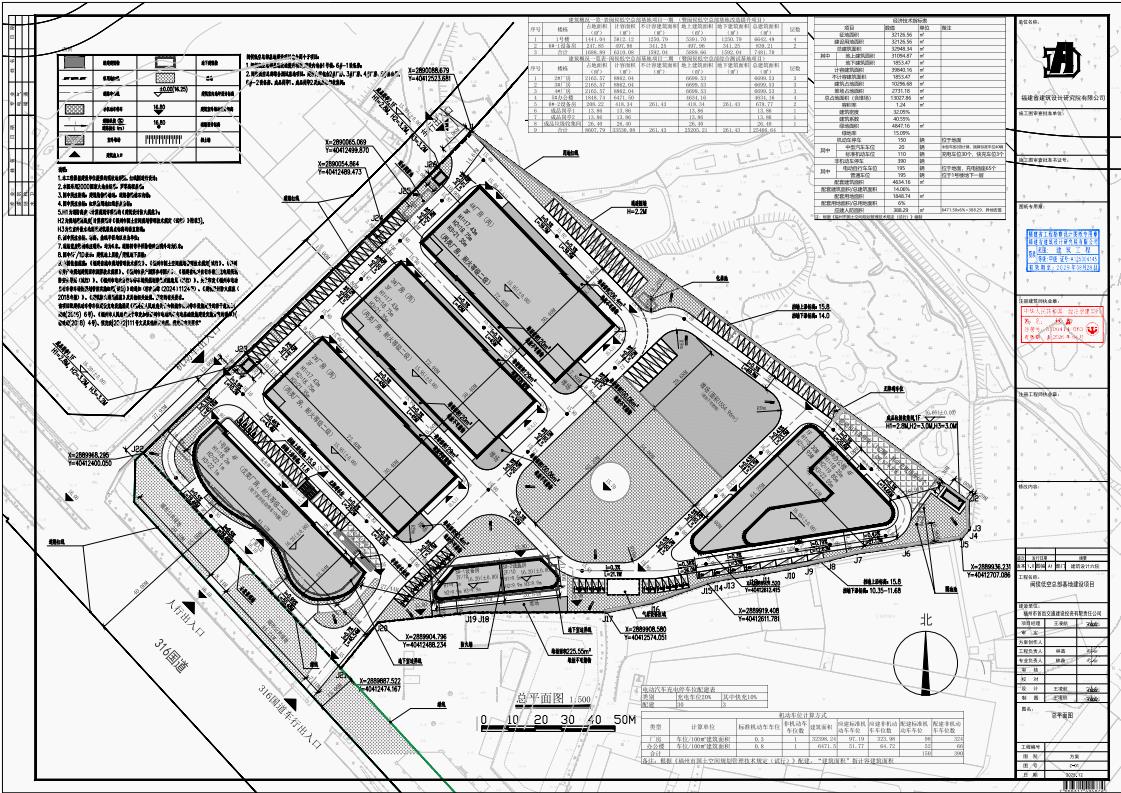 该地块原备案名为“福建省建筑新技术试验转化基地”,原总平面规划方案于2018年经原闽侯县城乡规划局批复,主要经济技术指标为:征地面积47612.72㎡(折合71.419亩),实用地面积47612.72㎡,建筑面积108793.09㎡,计容面积95225.44㎡,占地面积18078.6㎡,容积率2.0,建筑密度38%,绿地率20%,机动车停车位370辆,非机动车停车位2858辆。