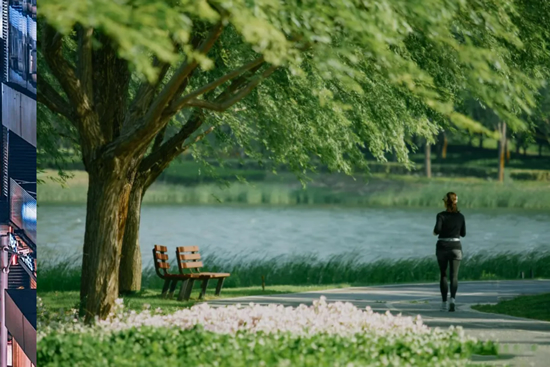 新榕·亦川水岸实景展示区,通过精细化的设计消弥公园与社区的界线,从真实需求与场景规划空间动线,围绕个体的需求不断展开生活方式的创变与延伸。