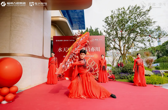 采青得胜后,一段名为《绽放·启新》的红扇舞蹈绚丽上演,值此辞旧迎新之际,火热的红扇舞蹈喻示着新榕·亦川项目正式迎来开门红,也祈祝来宾们新的一年红红火火。