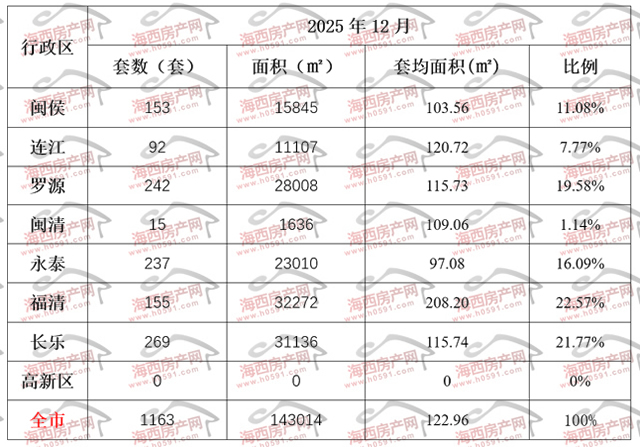此外,今年12月下辖八县(市)区住宅签约1163套、143014㎡,与2024年同期相比分别减少36.09%和35.44%。