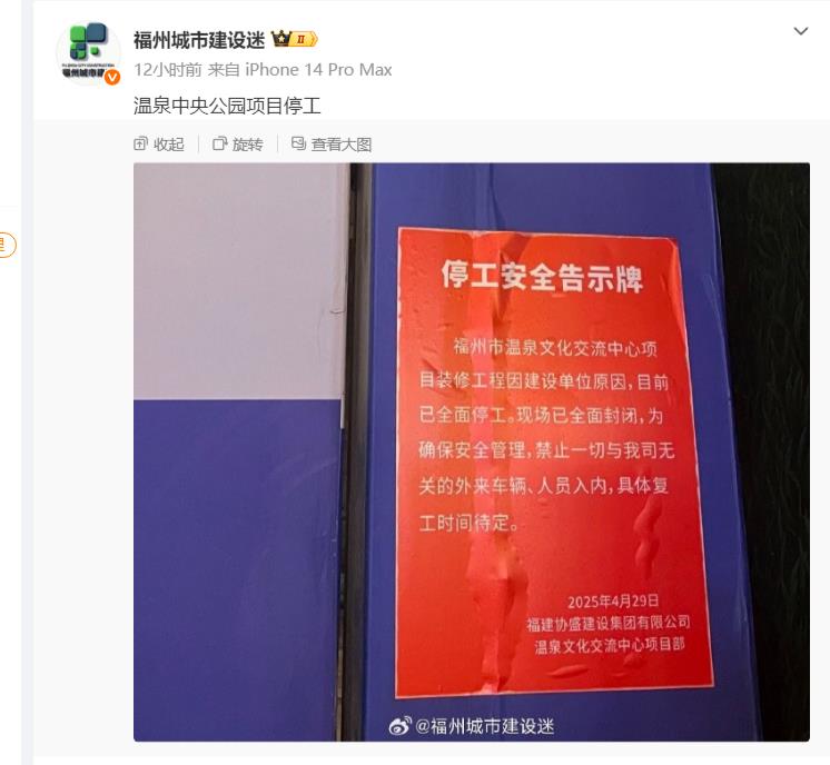 海西房产网(微信公众号:fjhxfcw)消息:2026年1月4日,福州微博大V@福州城市建设迷曝料,“温泉中央公园项目停工”。