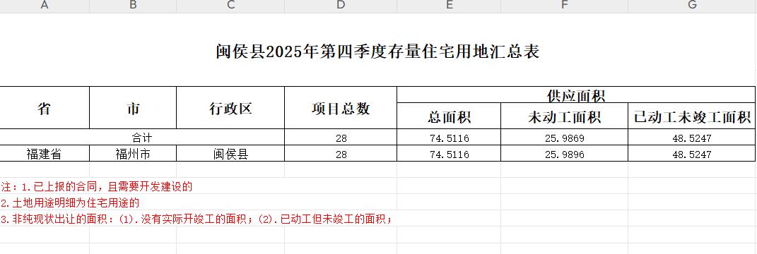 闽侯县2025年第四季度存量住宅用地汇总表