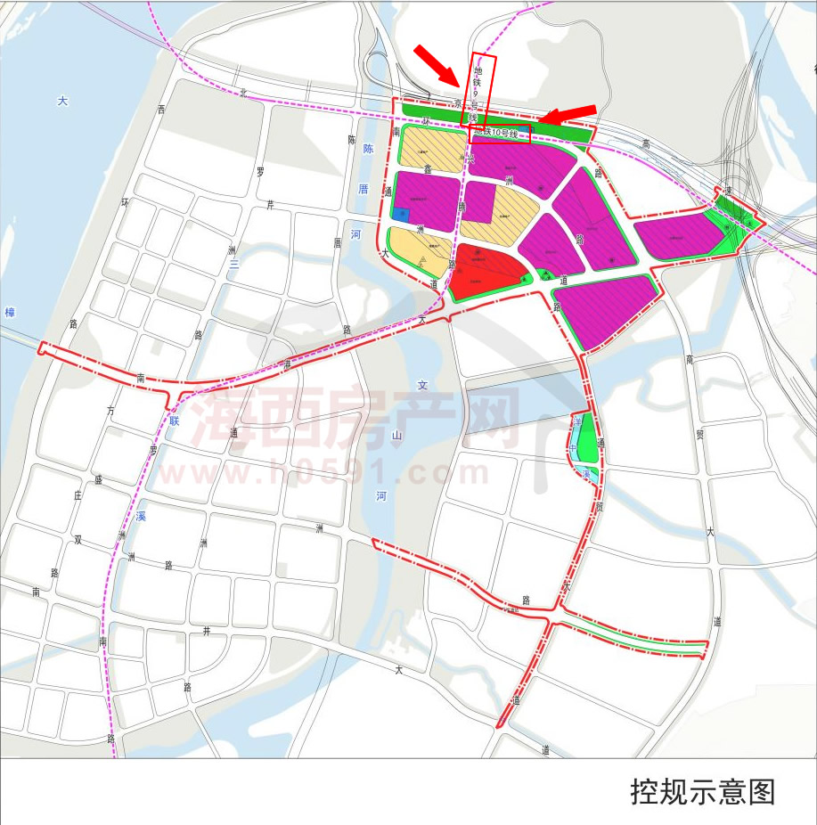 在本次公布的控规图中,明示标注了福州地铁9号线、地铁10号线。两条地铁线路或在北环路与兴腾路交汇。