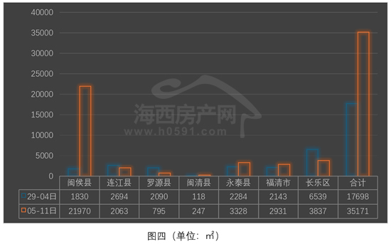 “福清”和“连江”位列四、五两位,上周分别签约3328㎡和2063㎡,环比前一周同样一涨一跌。