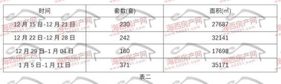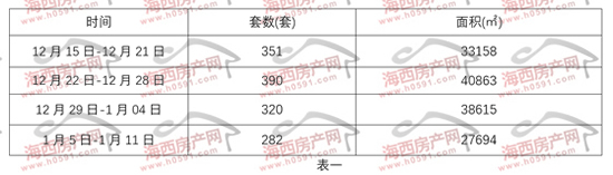 表一为20265年12月15日-2026年1月11日福州五行政区住宅签约明细表。上周福州五区住宅签约282套,环比前一周减少38套。