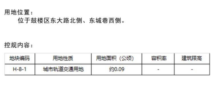 地块编号 H-8-1,用地性质为城市轨道交通用地,用地面积约0.09公顷(折合1.35亩)。