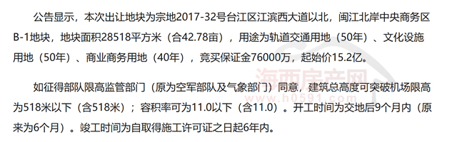 通过对比后发现,此次对外招商闽江北中央商务区B1地块即为原先的福州宗地2017-32号。