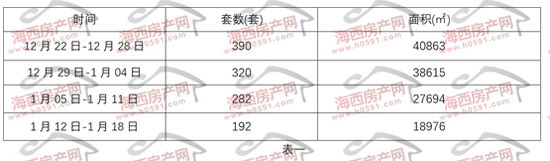 ——1月12日-18日五区住宅签约192套,面积18976㎡