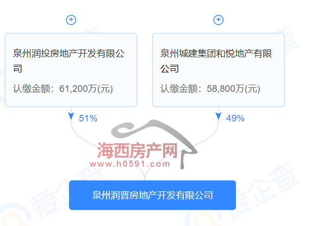 股权穿透图显示,泉州润投房地产开发有限公司、泉州城建集团和悦地产有限公司分别持有该公司51%和41%股权。