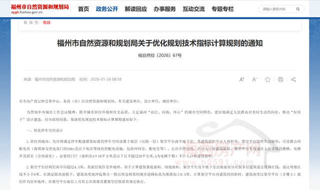 海西房产网(微信公众号:fjhxfcw)消息:1月26日,福州市自然资源和规划局下发“关于优化规划技术指标计算规则的通知(榕自然综〔2026〕67号)”。