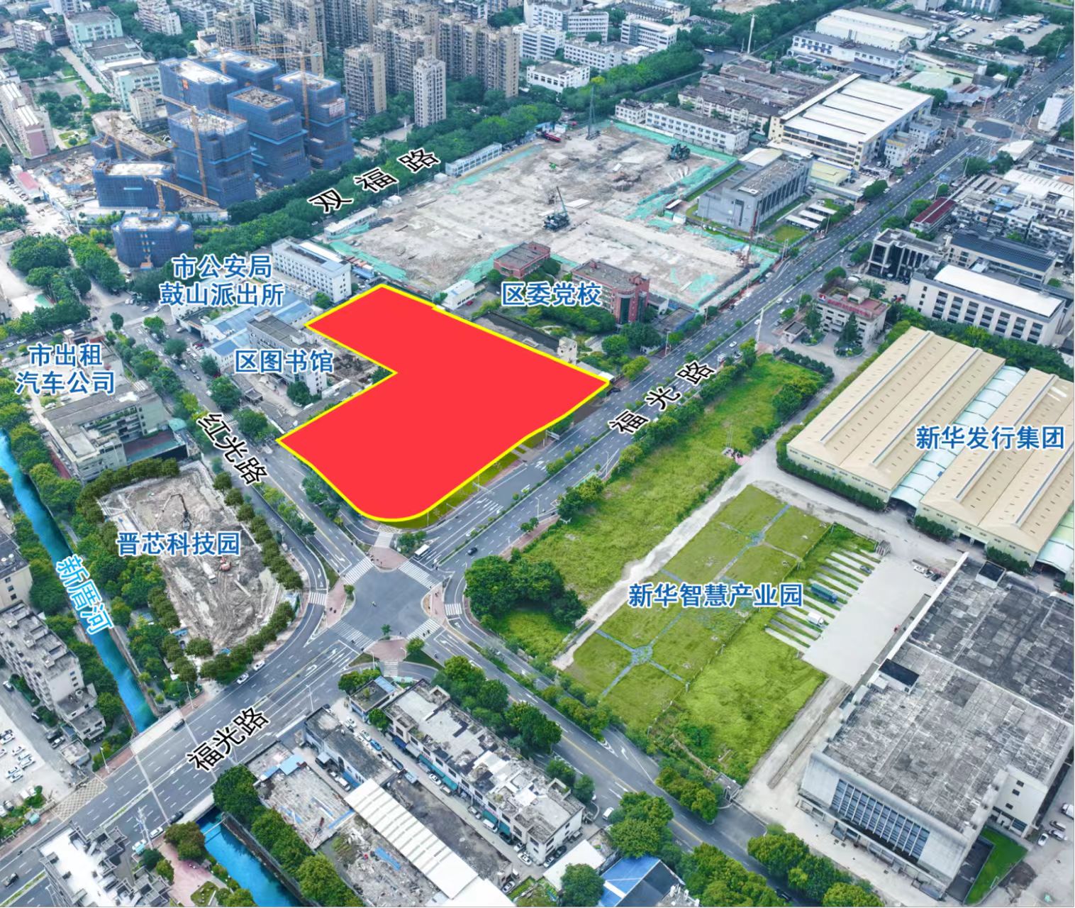 片区周边拥有高意科技(亚太总部),福建省农业科学院,福建新华发行(集团)有限责任公司,中莉创新加速产业园等工业园和办公区,以及福州市晋安区红光苑小学,福州市红光小学,恒宇国际公园,汇诚雅园,福兴外口公寓等教育,居住配套,是晋安区"宜居,宜业"的高质量发展片区。