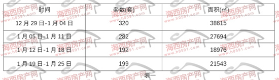 ——1月19日-25日五区住宅签约199套,面积21543㎡