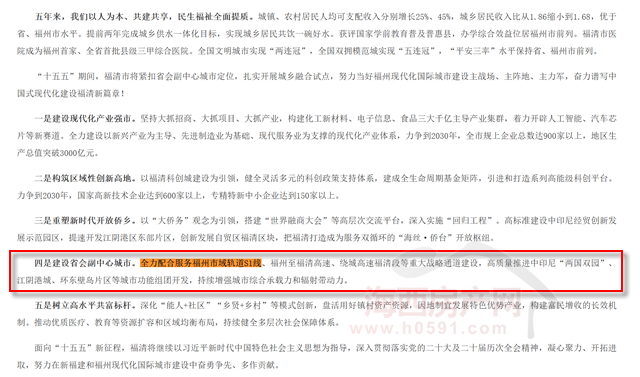 其中,在建设省会副中心城市方面,陈登峰表示,将全力配合服务福州市域轨道S1线、福州至福清高速、绕城高速福清段等重大战略通道建设,高质量推进中印尼“两国双园”、江阴港城、环东壁岛片区等城市功能组团开发,持续增强城市综合承载力和辐射带动力。