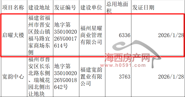 其中,位于福州东区的“启曜大楼”项目已于1月28日取得建设用地规划许可证。