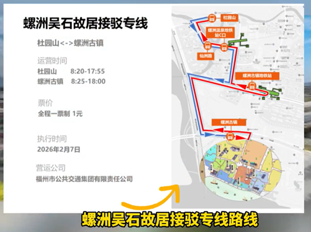 为强化公交地铁接驳,便利市民出游螺洲古镇,从2026年2月7日起,新增螺洲吴石故居接驳专线公交线路,具体如下: