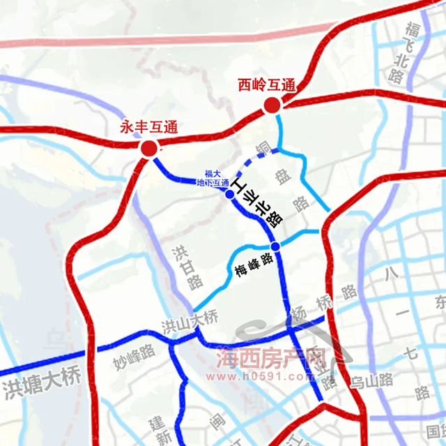 作为福州西片区的南北向快速通道——工业北路延伸段二期工程(梅峰路至北三环路段),项目建成后,车辆可从闽江学院沿工业路快速通达北三环。