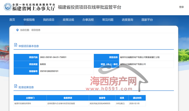 “聚富星耀汇公馆”项目法人单位为“福州市合福顺房地产有限公司”,备案号“闽发改备[2026]A060035”。
