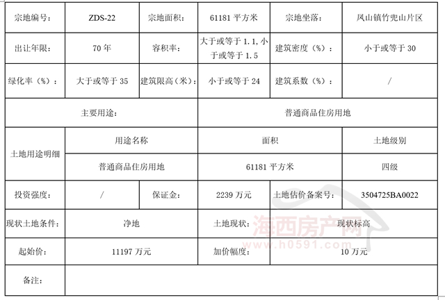 本次拍卖地块编号为ZDS-22,地块位于凤山镇竹兜山片区,用途为普通商品住房用地。