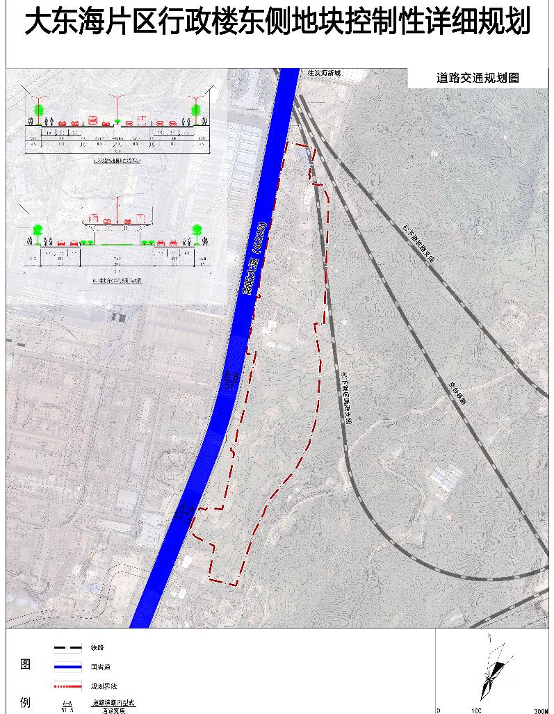 规划区西侧为国道G228松下大东海行政门段,全线宽度总控100米,经区政府及公路主管部门同意,道路中心东侧30米至50米范围,采用绿线控制,范围内不得布置建、构筑物,今后如遇沿线道路拓宽、管线敷设等,需服从政府部门建设需要安排;国道G228松下段双向八车道。
