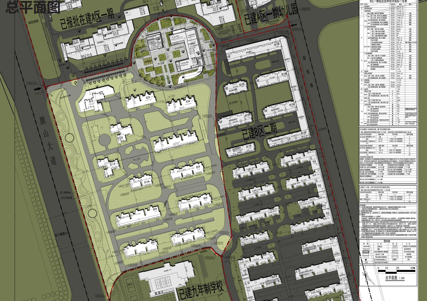 为了优化项目规划设计,建设单位向我局申请对该项目B区一期总平面规划进行调整,并规划建设B区-商业楼。该项目总平面规划及建筑设计方案由福建众合开发建筑设计院有限公司设计,主要经济技术指标为:总用地面积59213平方米,实用地面积59213平方米(折合88.81亩),容积率1.673,建筑密度14.3%,绿地率30%;总建筑面积121286.31平方米,计容建筑面积99063.01平方米,不计容建筑面积22223.3平方米,建筑占地面积8470.03平方米,机动车停车位450辆,非机动车停车位109辆。