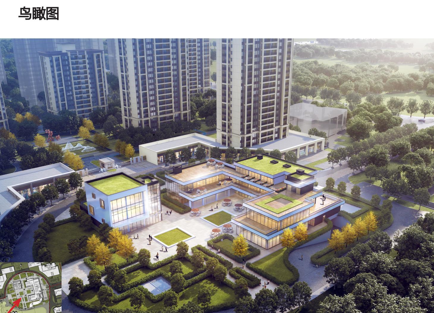 本项目按照以人为本、方便生活的原则,设置住宅、配套及商业。2栋建筑成U形布置,与沿街底商形成良好商业氛围,同时腾出西南南侧空地作为绿化及市民活动广场。采用不对称的总平布局弱化轴线感,引导人流从西、南、北三个方向进入地块中心广场进行聚集互动。