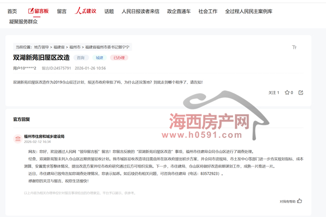 海西房产网(微信公众号:fjhxfcw)消息:近日,有市民通过人民网领导留言板咨询: