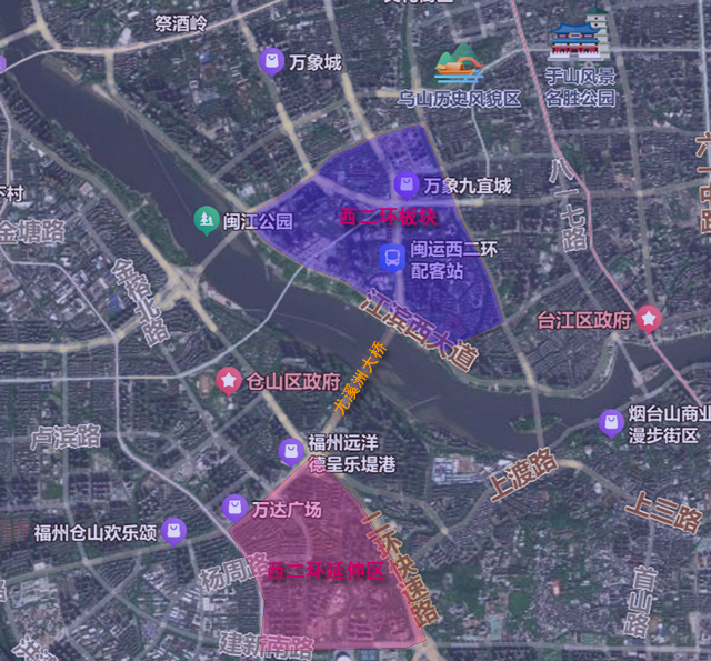 摊开福州地图会发现,从西二环沿线往南俯瞰,全长1.2公里的尤溪洲大桥,标定了金山板块与西二环的距离。