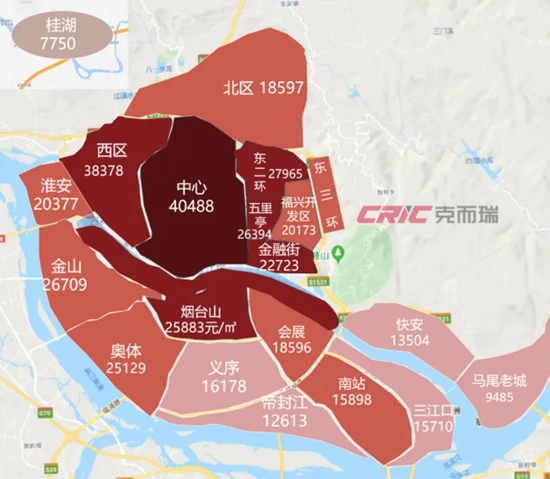 等于金山板块、奥体板块与相邻的西二环板块形成单价将近1.5万/㎡的巨大价差。