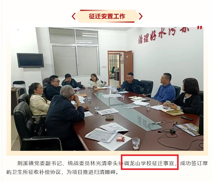 2025年12月19日,闽侯县荆溪镇聚焦重点工作,统筹推进重点攻坚与民生保障工作,各项任务有序推进。荆溪镇党委副书记、统战委员林光清牵头协调龙山学校征迁事宜,成功签订厚屿卫生所征收补偿协议,为项目推进扫清障碍。