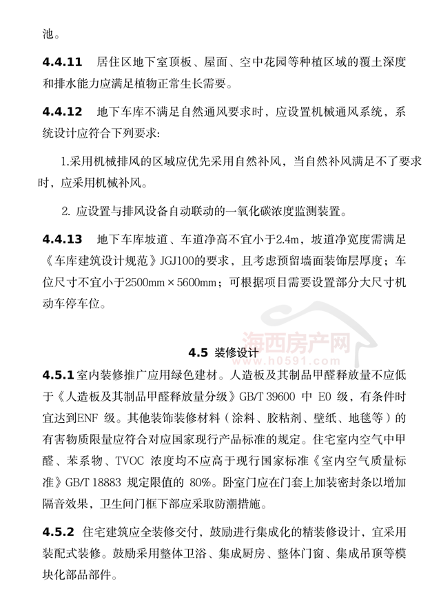 在建筑设计方面,“设计导则”提出,新建住宅层高不应小于3.00m,设有户式中央空调和集中新风系统的住宅,层高不应低于3.10m,设有地暖的住宅,层高不应低于3.15m。