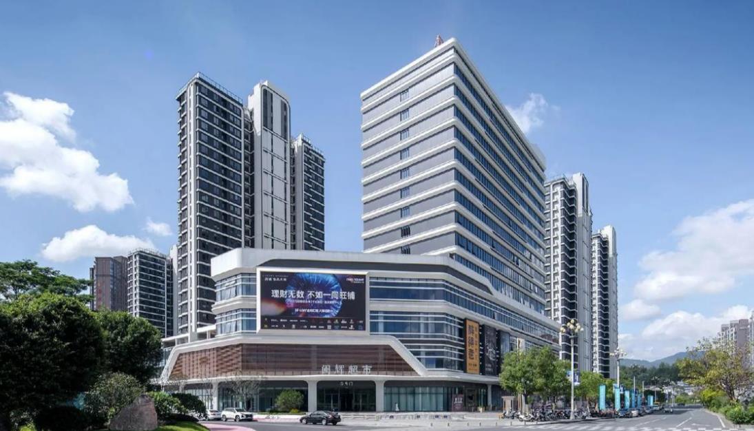 其中商业体量约3万㎡,规划有千米金街、滨水风情街,铺位面积29–181㎡,兼顾小商户与主力店;其中8000㎡闽辉超市已入驻,是社区核心商业配套;整体定位轻奢综合体,主打 “居、食、享、品” 一站式消费。