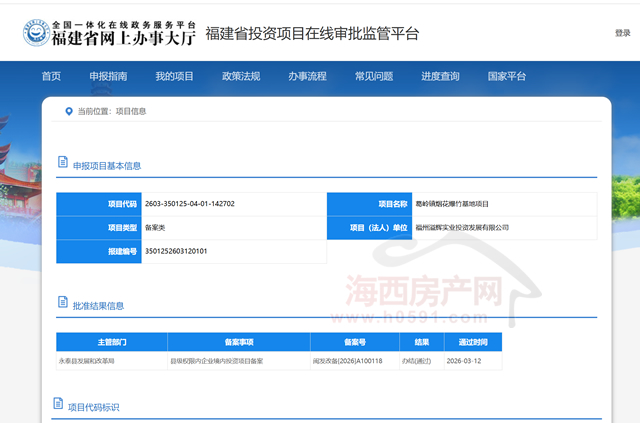 海西房产网(微信公众号:fjhxfcw)消息:福建省投资项目在线审批监管平台公布信息显示,“葛岭镇烟花爆竹基地项目”已于3月12日通过备案报建。