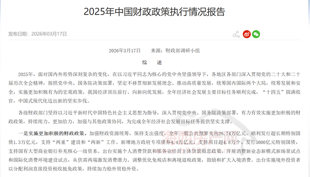 海西房产网(微信公众号:fjhxfcw)消息:3月17日,财政部调研小组发布“2025年中国财政政策执行情况报告”。