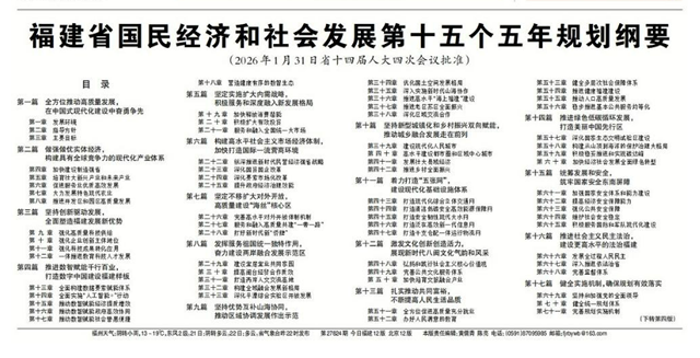 2026年1月31日省十四届人大四次会议批准,福建省国民经济和社会发展第十五个五年规划纲要于3月20日正式对外发布。