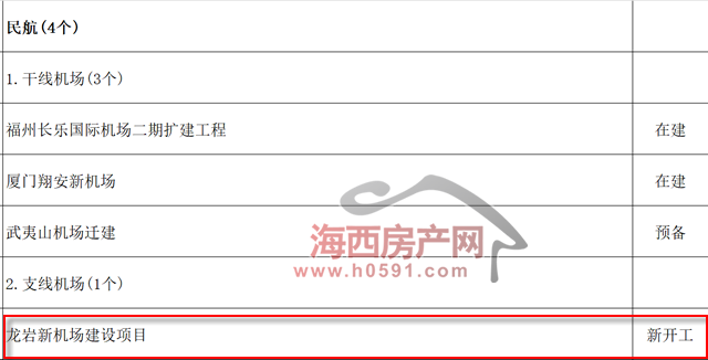 1570个省重点项目当中,包含4个民航项目。其中,龙岩新机场建设项目作为唯一入选的支线机场,明确为“新开工”。