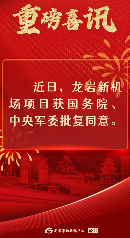据了解,龙岩新机场于2023年12月获国务院、中央军委批复同意。