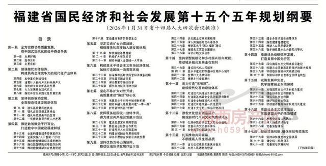 海西房产网(微信公众号:fjhxfcw)消息:2026年1月31日省十四届人大四次会议批准,福建省国民经济和社会发展第十五个五年规划纲要于3月20日正式对外发布。