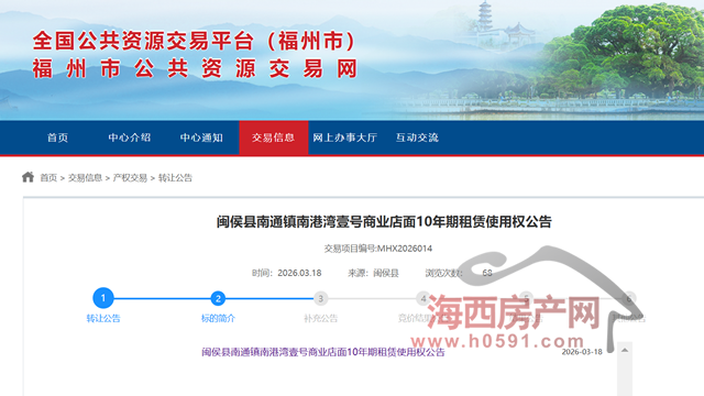 受闽侯县南港振兴一乡村发展有限公司委托,福建省晨至信拍卖行有限公司在闽侯县公共资源交易服务中心通过网络竞价+现场拍卖相结合的方式公开对闽侯县南通镇南港湾壹号【本网注:三盛璞悦湾,以下同】商业店面10年期租赁使用权项目进行拍卖。