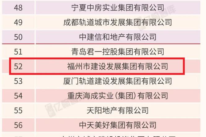 福州市建设发展有限公司,是福州房企中排名最高的。排名第52位。