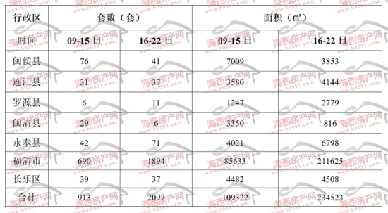 上周福州下辖七县(市)区住宅签约明细表