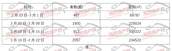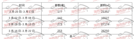 ——3月16日-22日五区住宅签约253套,面积26250㎡