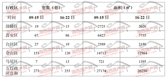 上周福州五行政区住宅签约明细表