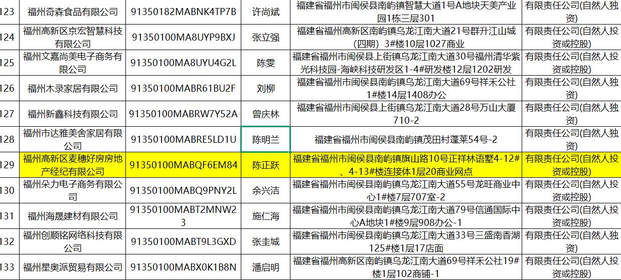 房地产行业企业有福州高新区麦穗好房房地产经纪有限公司、福州亿居营销策划有限公司。
